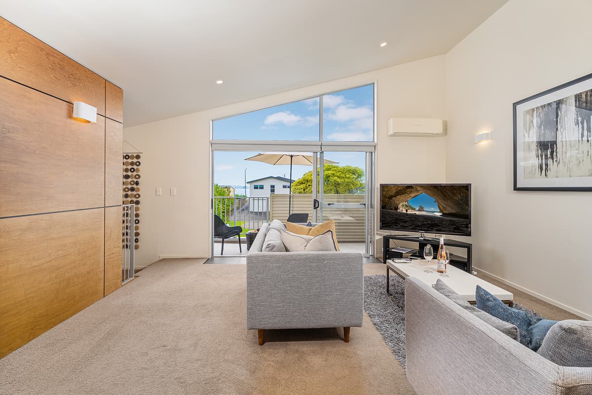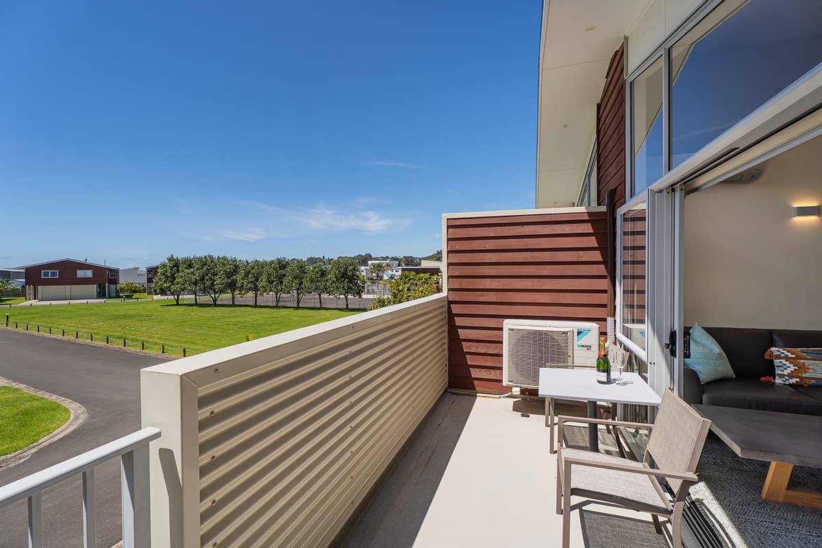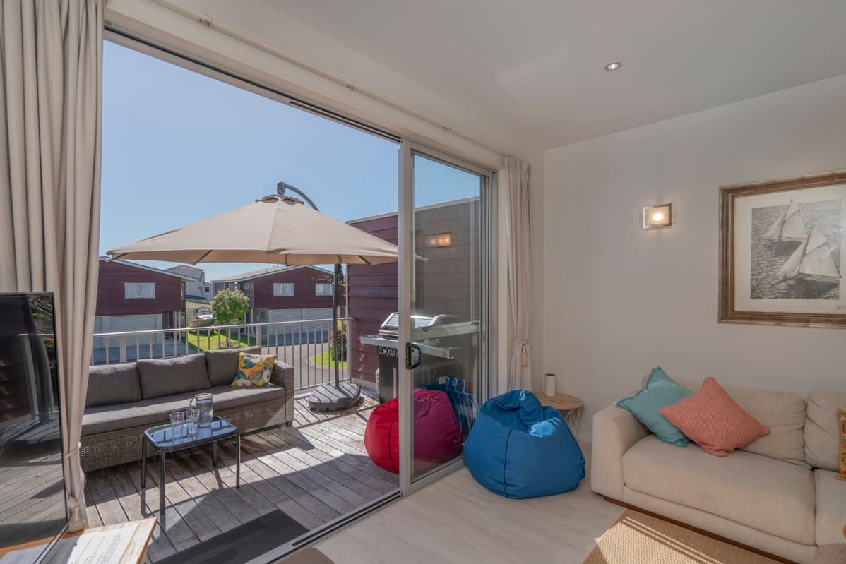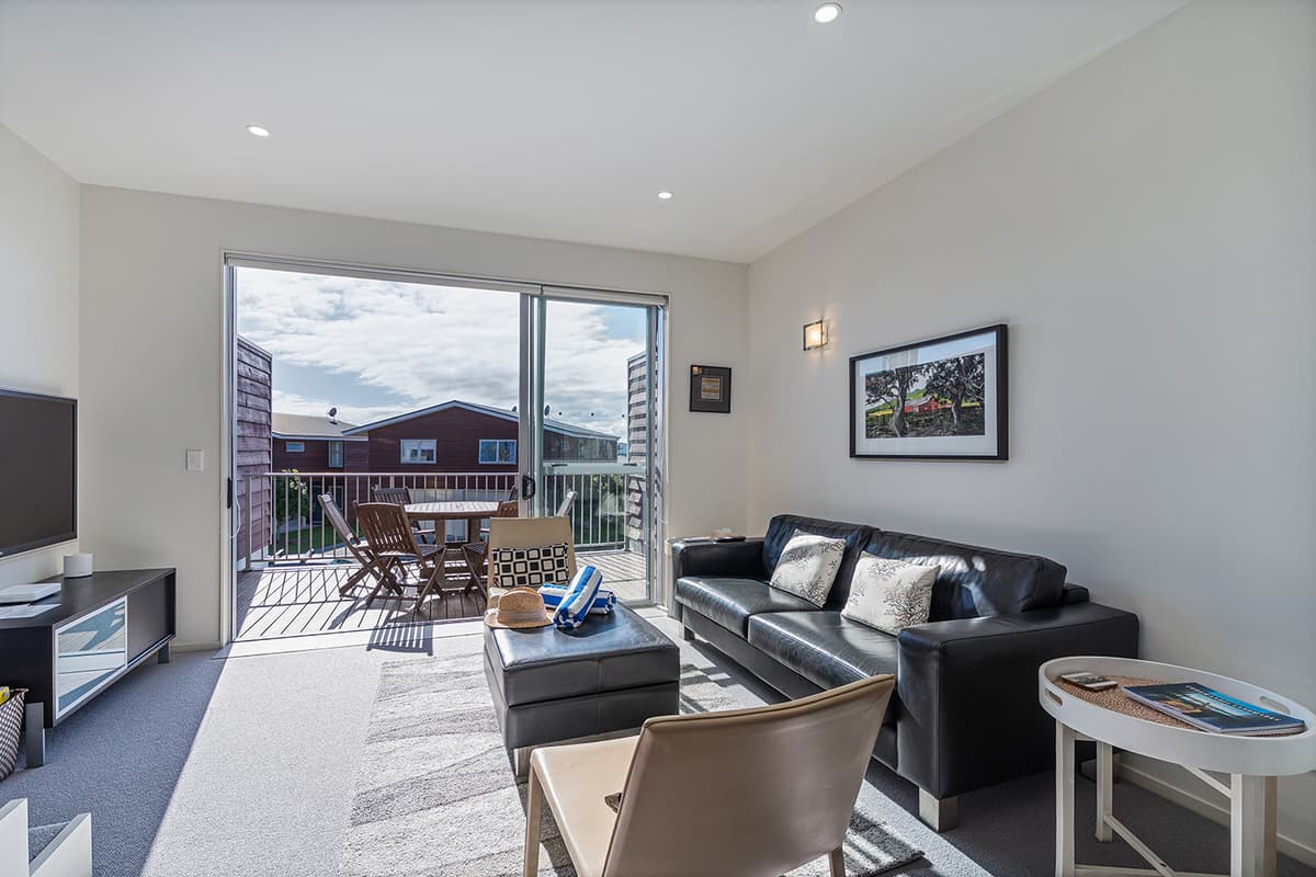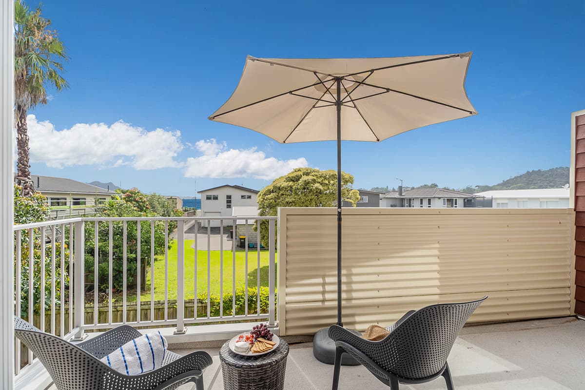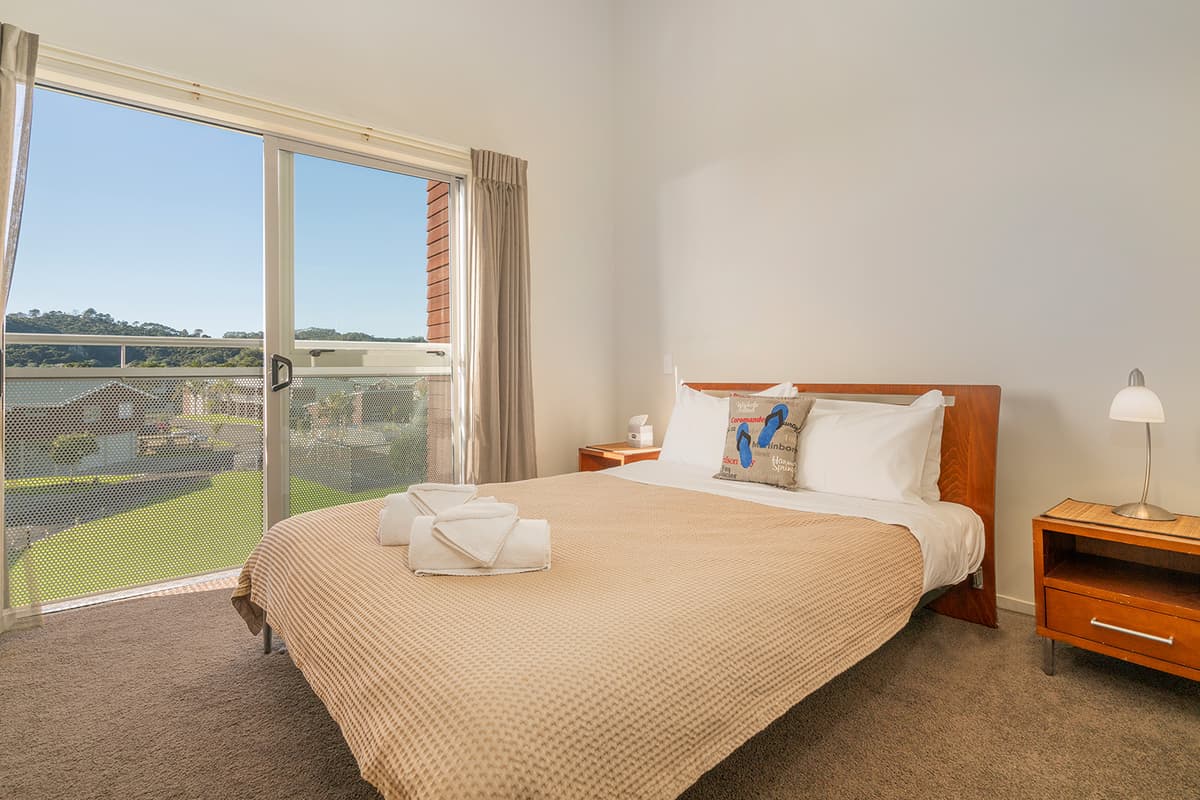 Experience luxury group accommodation in Whitianga at The Peony Apartment (Apt 24), a stylish three-bedroom, two-bathroom retreat with secure entry, resort facilities, and stunning partial sea views.