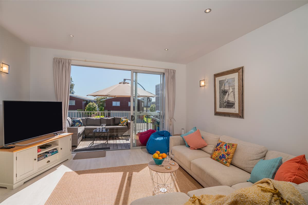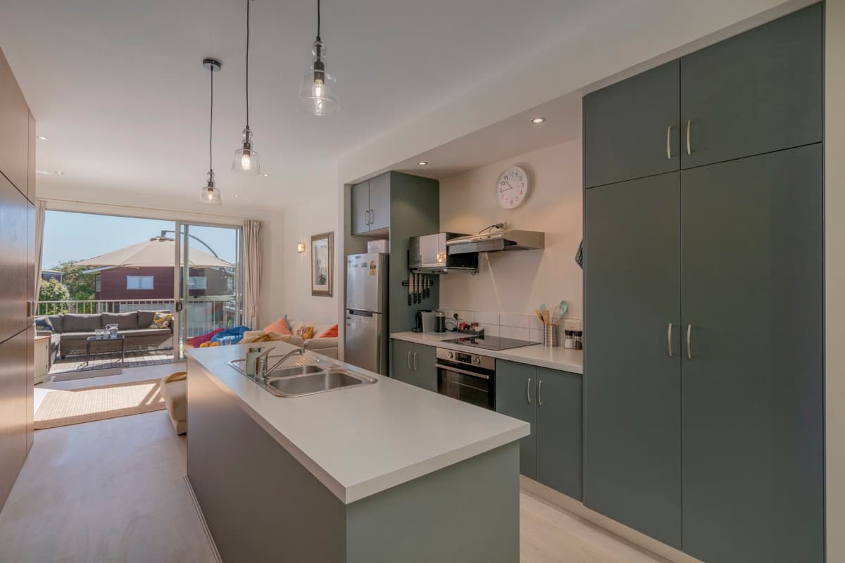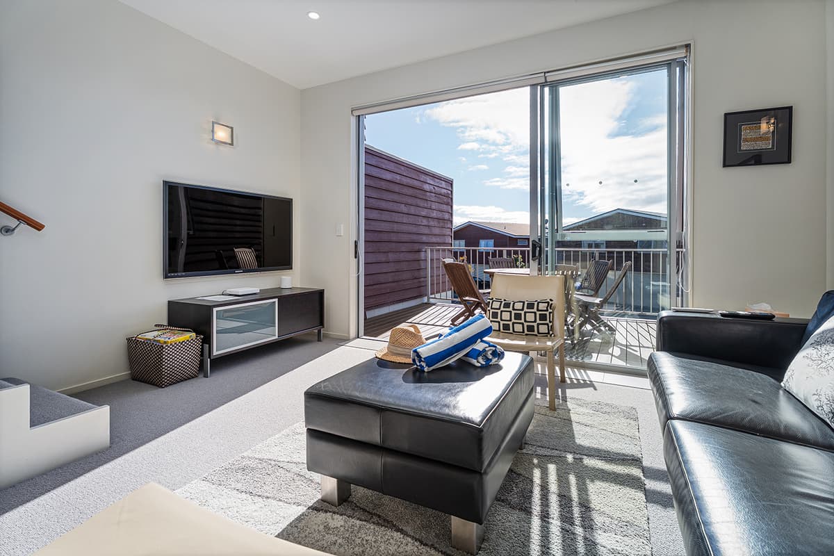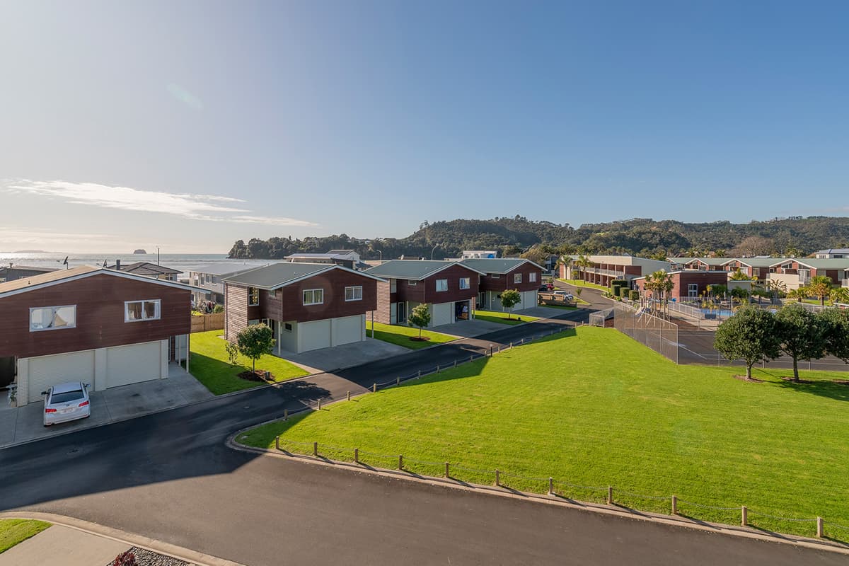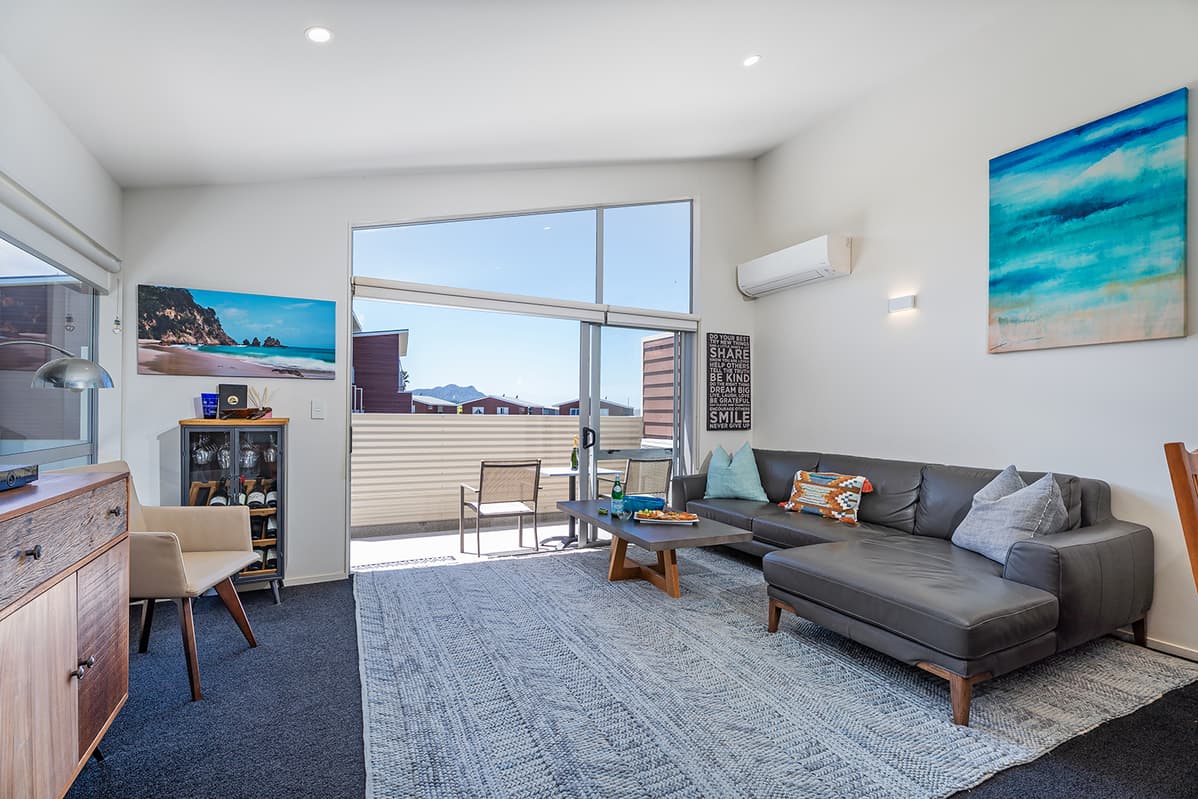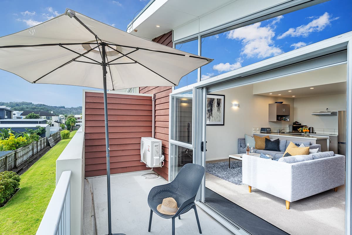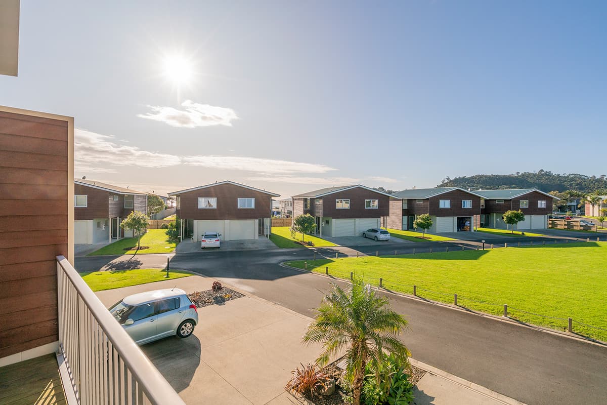 Experience luxury group accommodation in Whitianga at The Peony Apartment (Apt 24), a stylish three-bedroom, two-bathroom retreat with secure entry, resort facilities, and stunning partial sea views.
