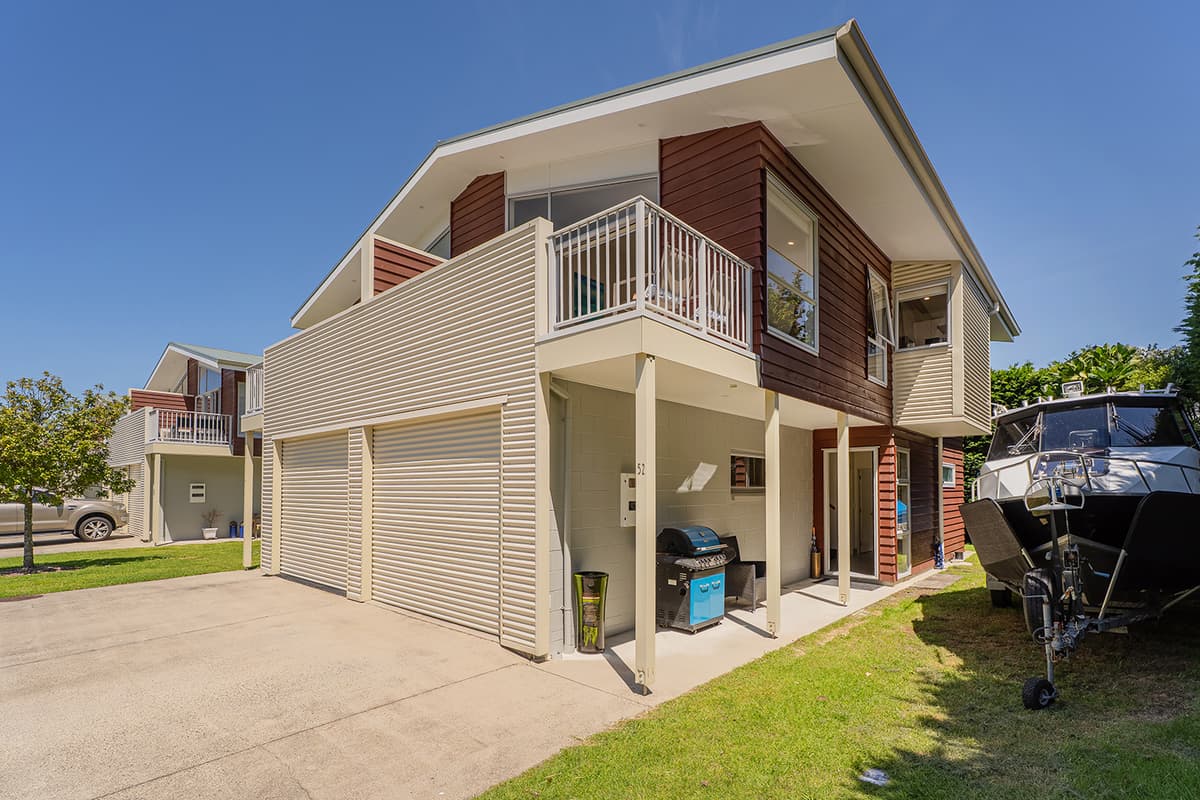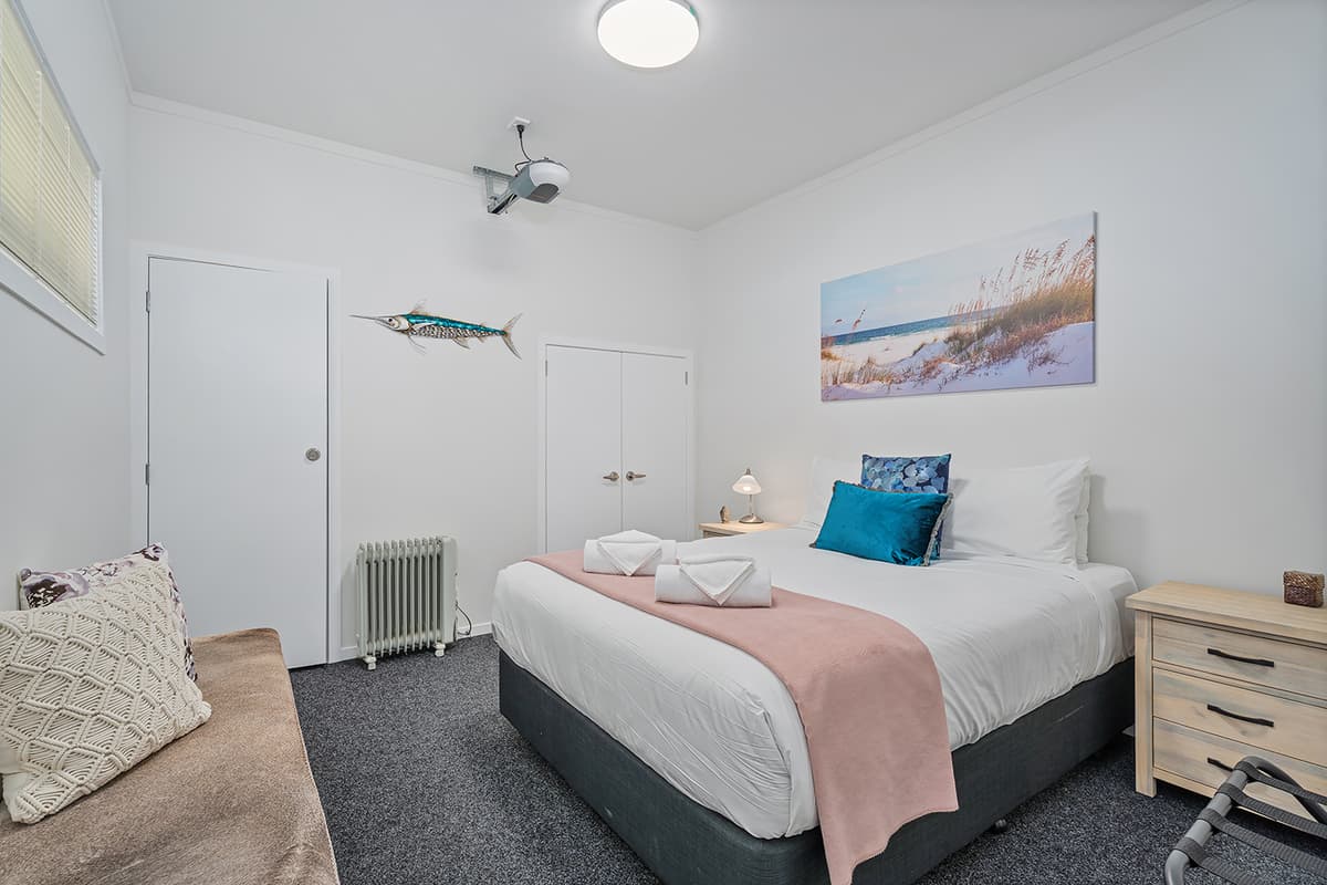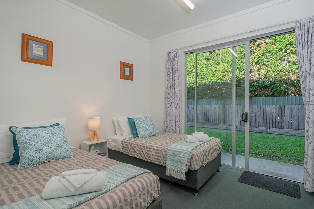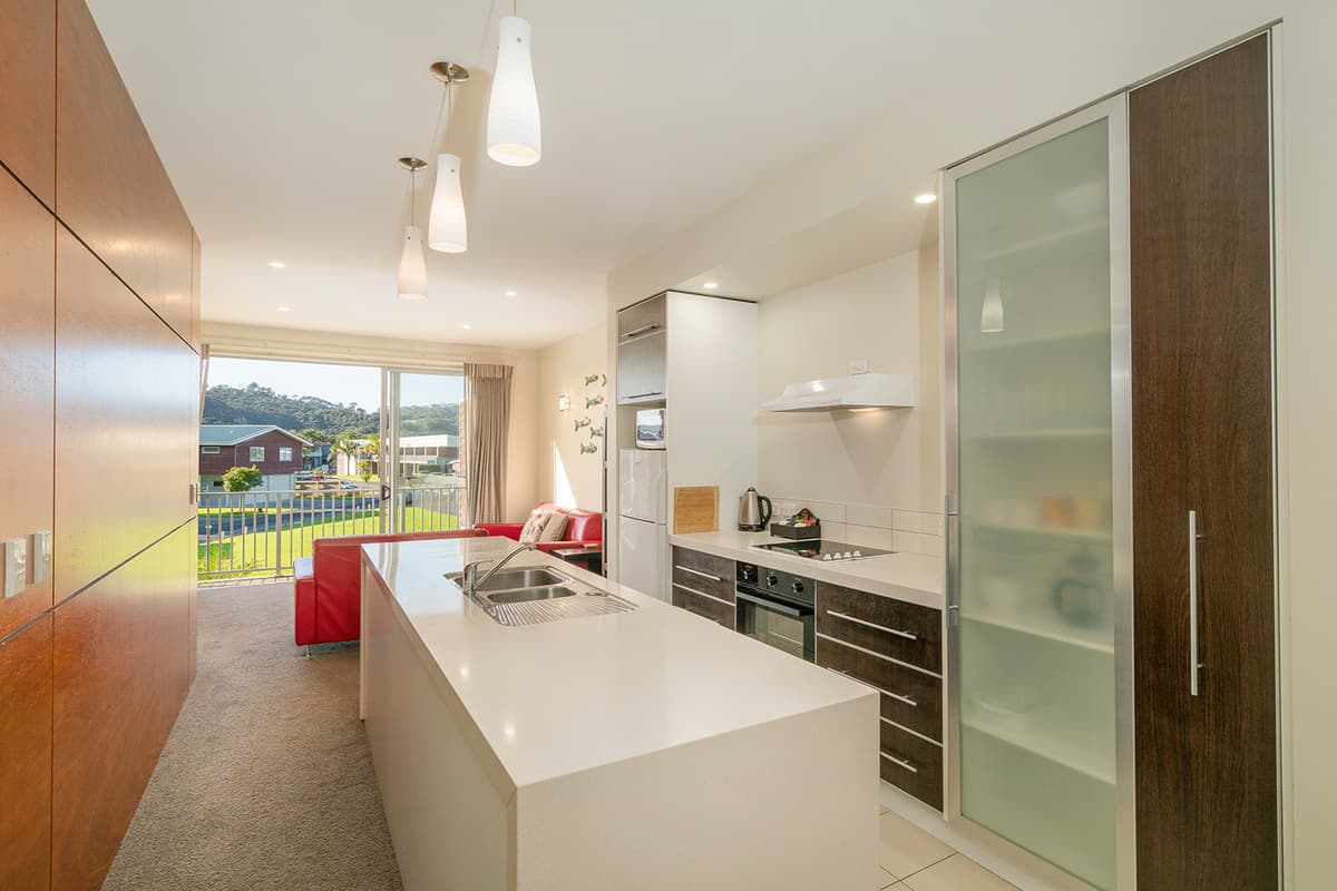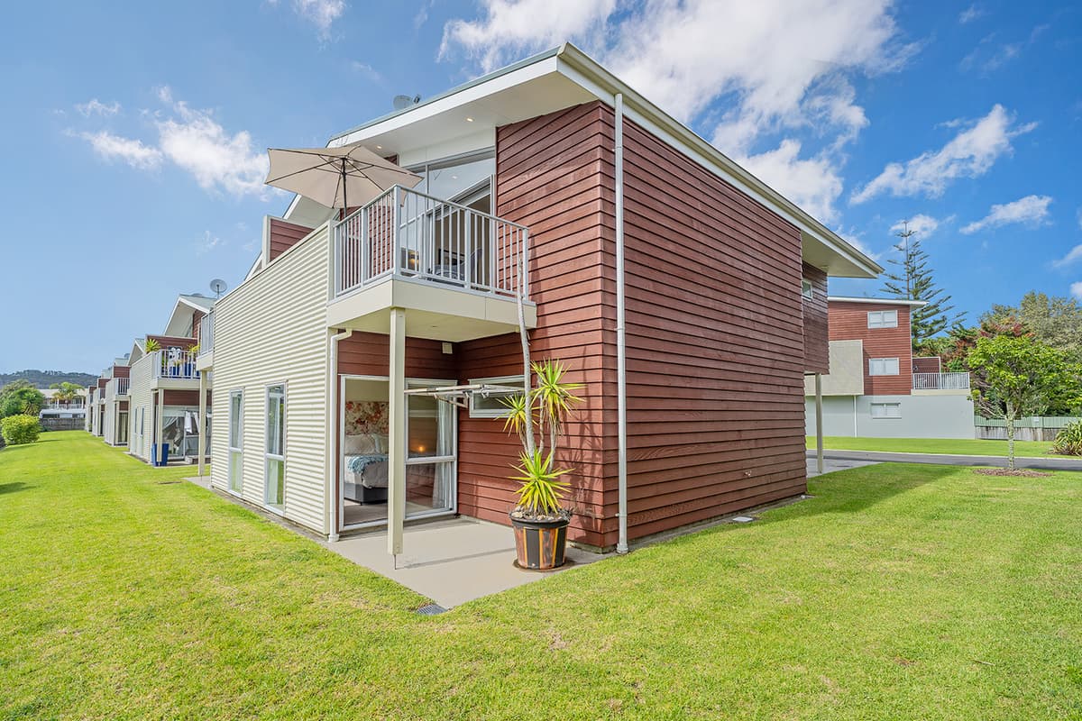 Relax in comfort with family and friends at The Pohutukawa Apartment (Apt 43), a spacious three-bedroom, two-bathroom (with one bedroom that opens to the garage and laundry area) accommodation with parking for two vehicles in the heart of Whitianga.