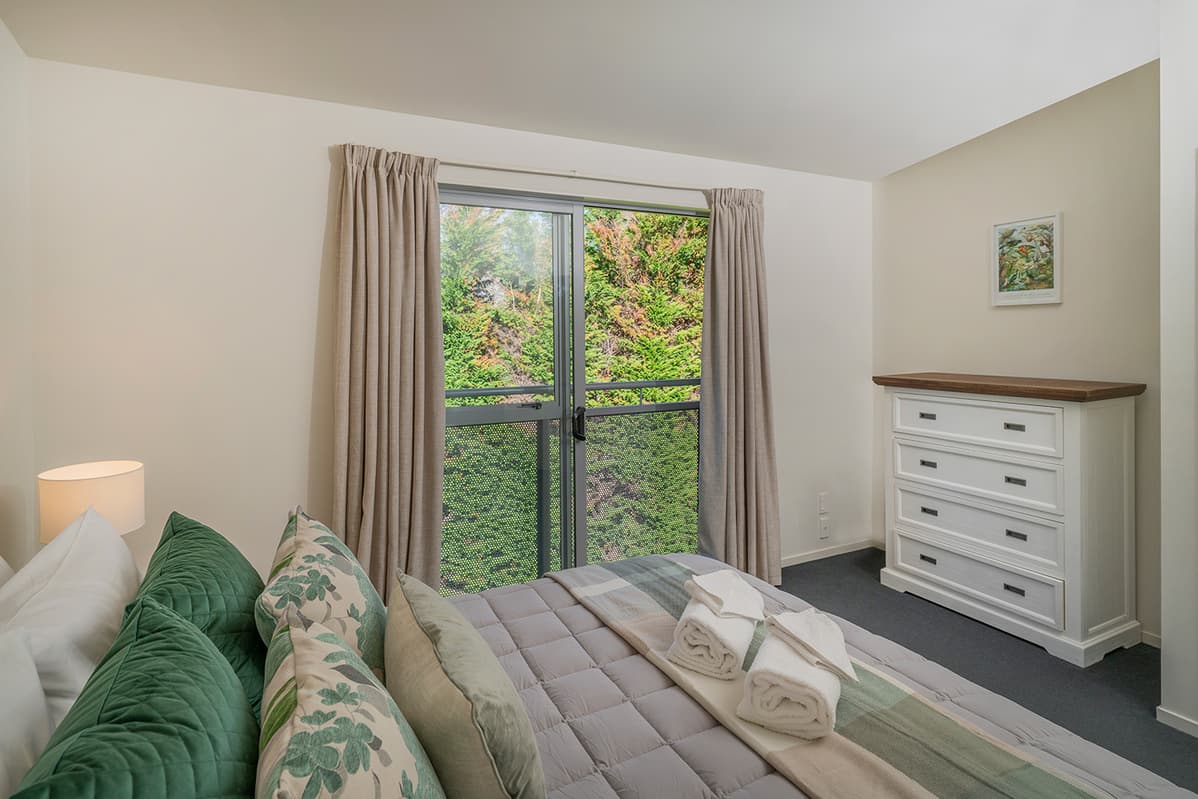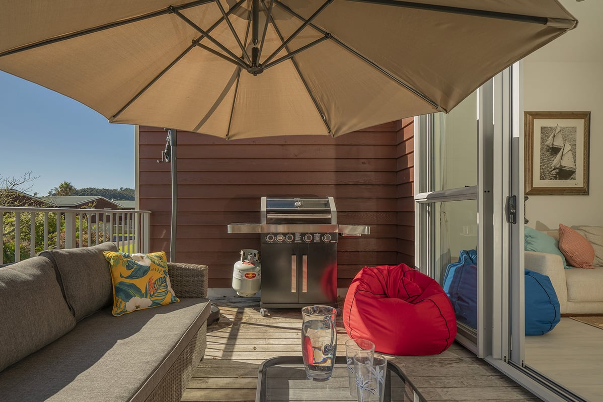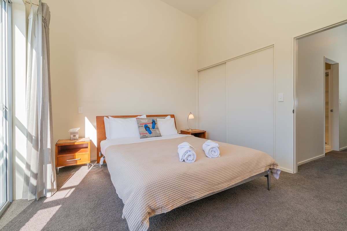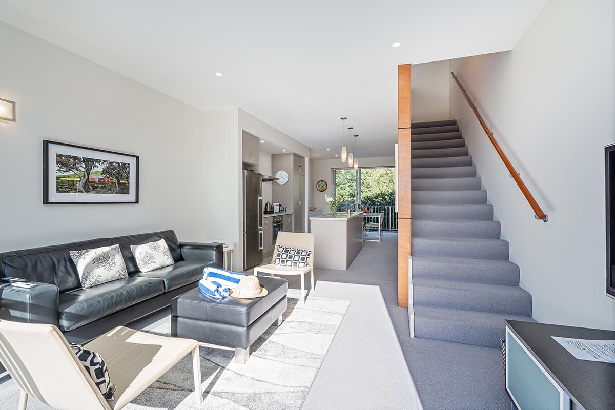 Relax in comfort with family and friends at The Pohutukawa Apartment (Apt 43), a spacious three-bedroom, two-bathroom (with one bedroom that opens to the garage and laundry area) accommodation with parking for two vehicles in the heart of Whitianga.