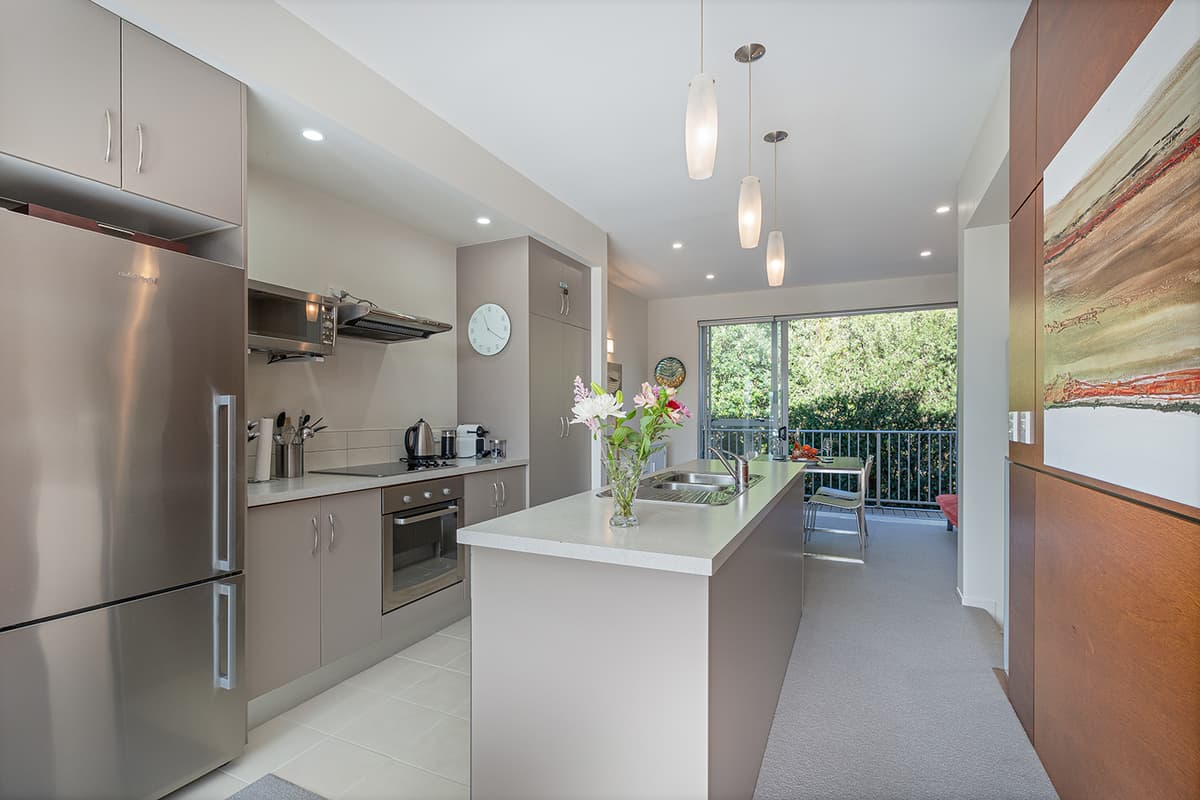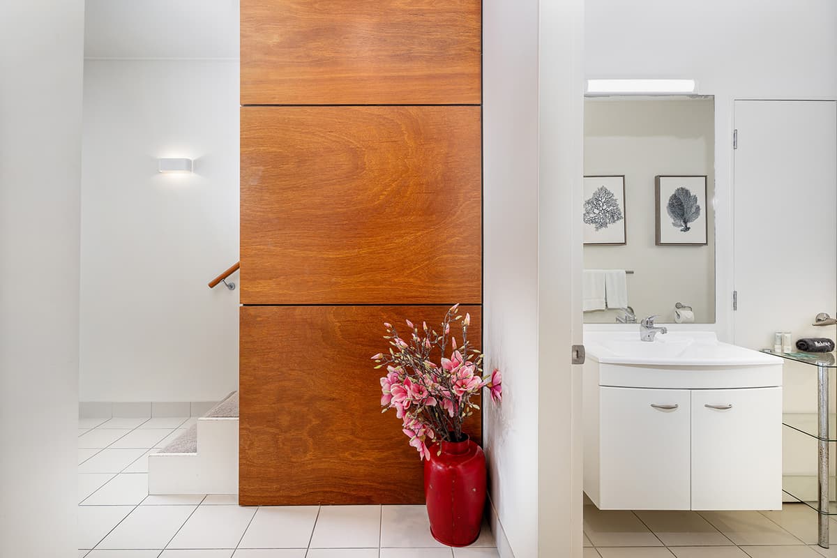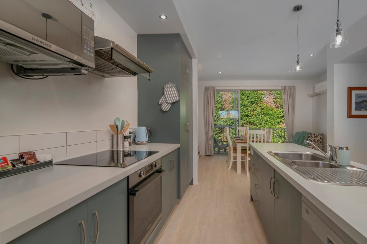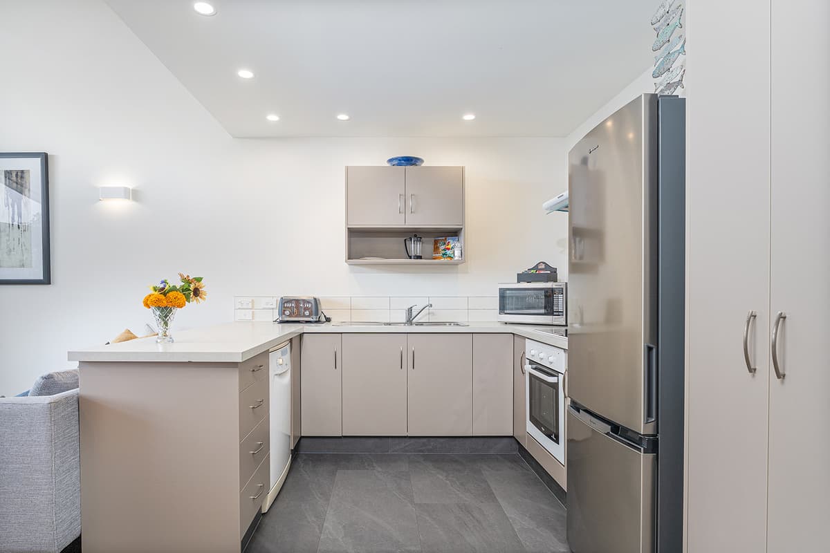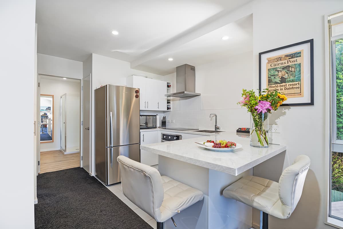 Relax in comfort with family and friends at The Pohutukawa Apartment (Apt 43), a spacious three-bedroom, two-bathroom (with one bedroom that opens to the garage and laundry area) accommodation with parking for two vehicles in the heart of Whitianga.